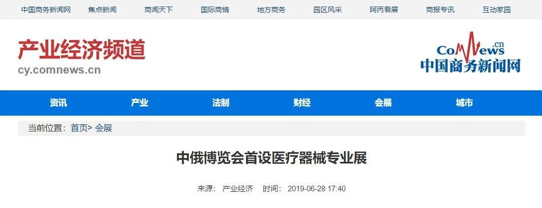 中國(guó)商務(wù)新聞網(wǎng)報(bào)道中俄博覽會(huì)首設(shè)醫(yī)療器械專業(yè)展