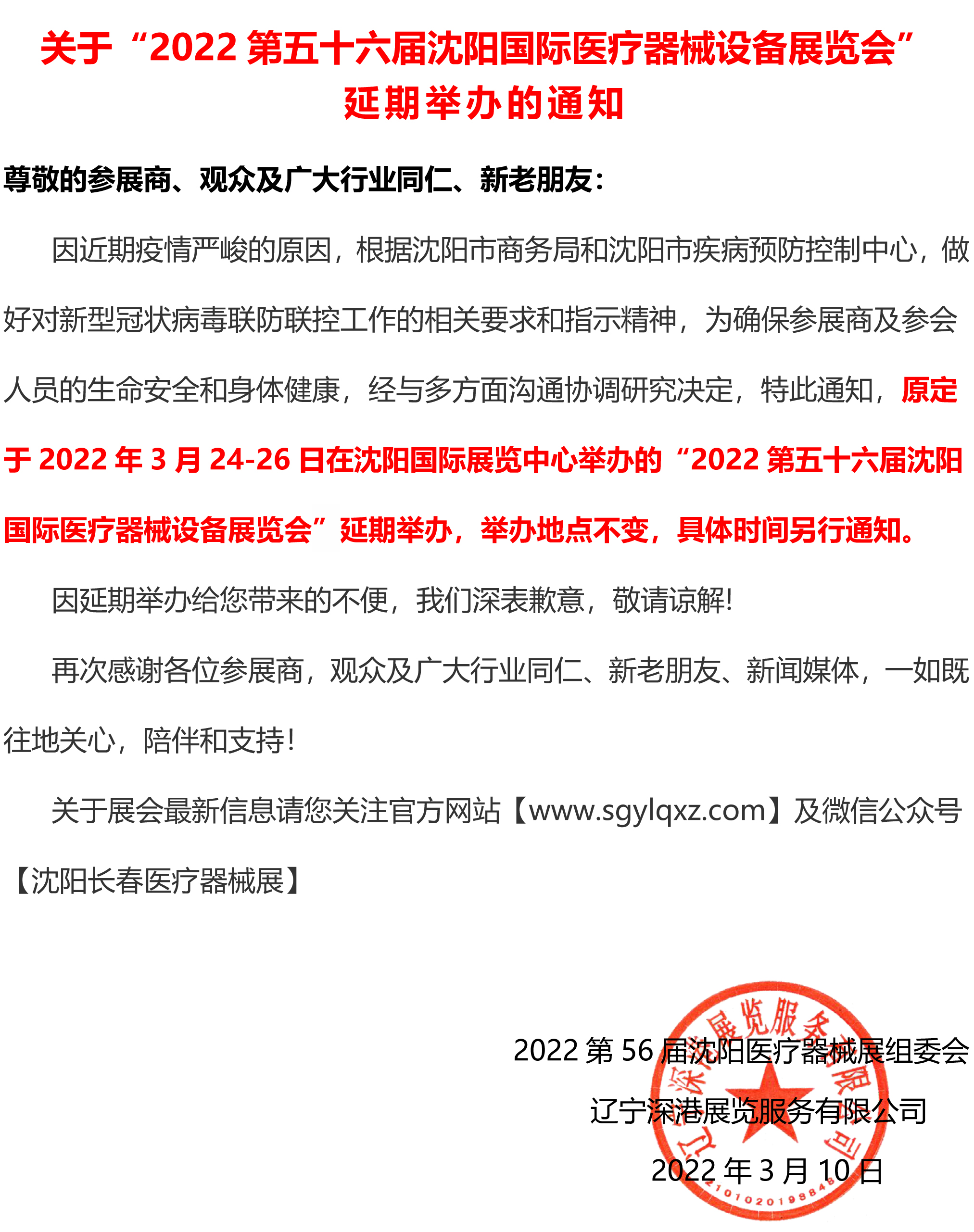 | 延期通知|2022第五十六屆沈陽國際醫(yī)療器械設(shè)備展覽會 | |